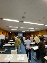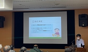 10月25日(土)に市民公開講座「腎臓病教室」を開催しました。昨年度までは当院外来患者さんを対象としていましたが、今年度は初めて市民の方を対象とし、広報紙で募集しました。募集には多数の申し込みをいただき、32名の参加がありました。当日は、医師、看護師、理学療法士、管理栄養士、薬剤師の多職種が協働し、それぞれの専門性を活かした視点から、日常生活での注意点や治療について解説しました。特に理学療法士による講義では、日常で実践できる運動方法を参加者の方々に体験してもらい、皆さん真剣に取り組んでいました。また、最後に講義に関するアンケートを実施し、「わかりやすい講義だった」「機会があれば今後も参加したい」などのお声をいただきました。今後もより地域に貢献できる腎臓病教室として、内容の充実に努めたいと思います。