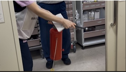 多摩病院は災害拠点病院として、病院全体で防災意識を高める取り組みを行っています。 昨年11月には大規模な地震を想定し、災害対策本部の立ち上げやトリアージブースの設営など、実戦的な訓練を実施しました。各部署でも、日頃から安全な避難誘導ができるよう、係を中心に机上シミュレーションやシステム障害時の紙カルテ運用訓練などを重ねています。特に一般外来はエリアが広く、多くの患者さんが来院されます。そのため2026年2月18日には、外来エリアでの火災を想定した部署訓練を行いました。火災の通報や情報共有、水消火器による消火体験のほか、搬送経路を確認しながらのストレッチャー・車椅子による避難も実施しました。 広いエリアで緊急事態を迅速に周知し、安全に避難を完了させる難しさを改めて実感するとともに、万が一の際に市民の皆さんの安全を守れるよう、今後も訓練を積み重ねていきたいと思います。